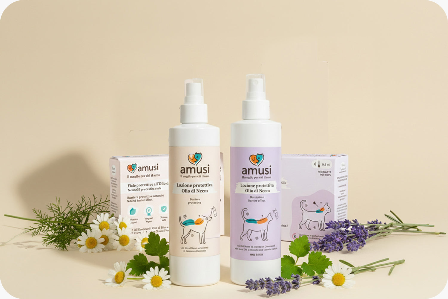 Ogni prodotto è formulato con ingredienti selezionati come Olio di Neem e oli essenziali di origine vegetale, scelti per le loro proprietà naturalmente protettive.