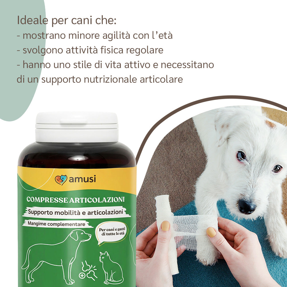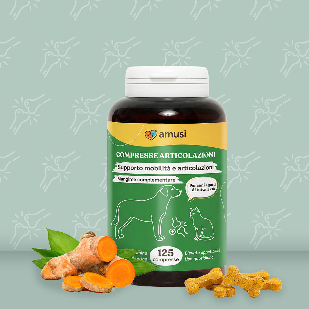 Mangime complementare in compresse per la salute e la mobilità delle articolazioni di cani e gatti.