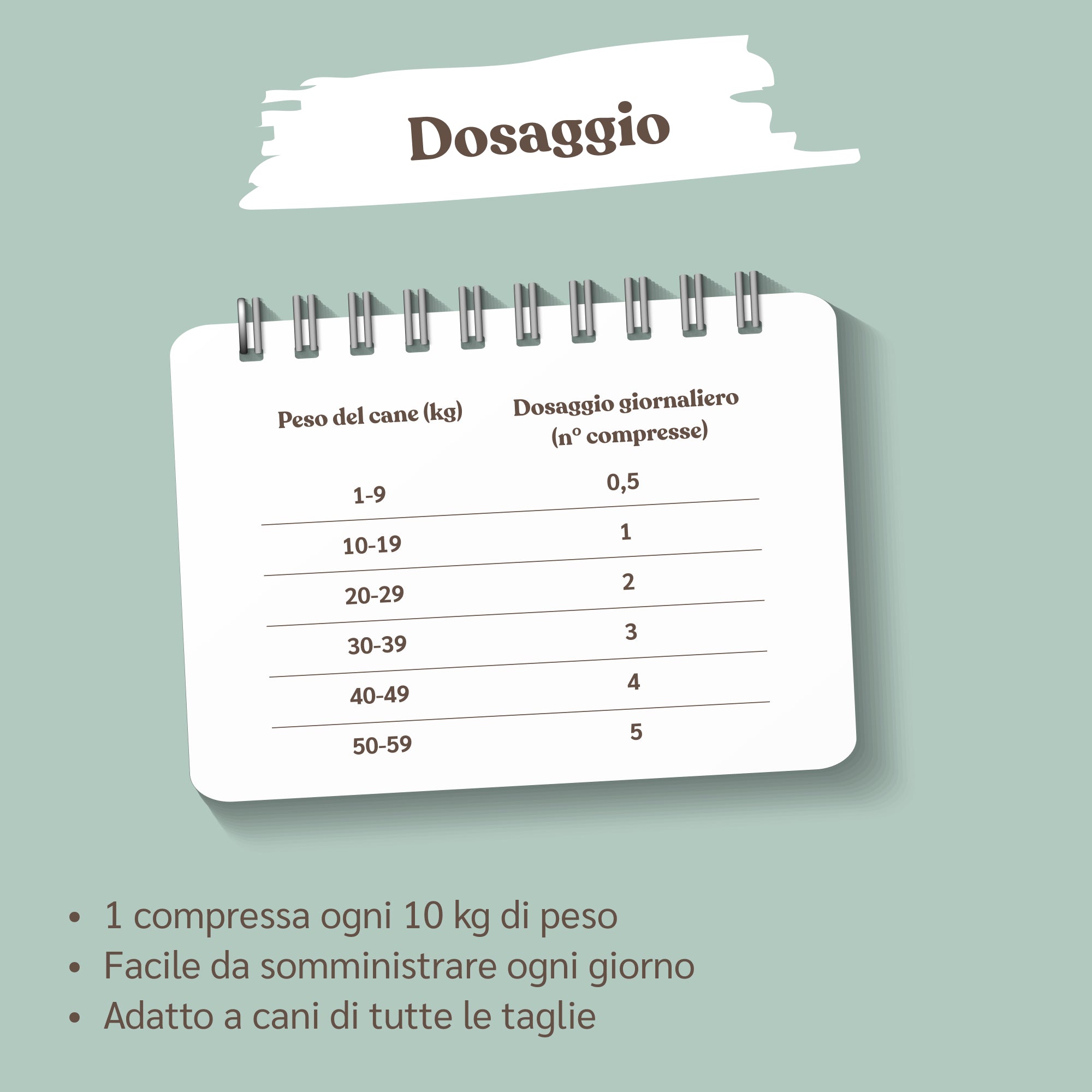 Modalità d’uso: somministrare una compressa ogni 10 kg di peso dell’animale.
